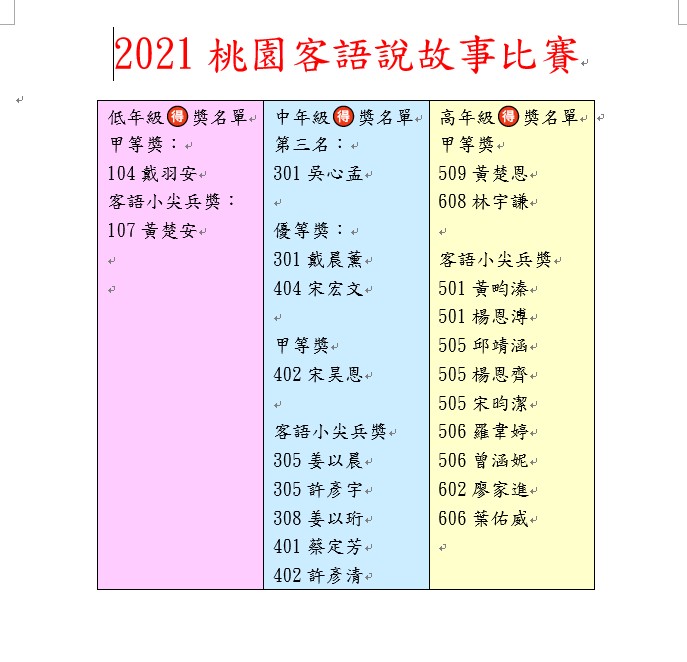 狂賀!!本校學生參加110年度客語說故事比賽,榮獲多項佳績!感謝老師指導 !