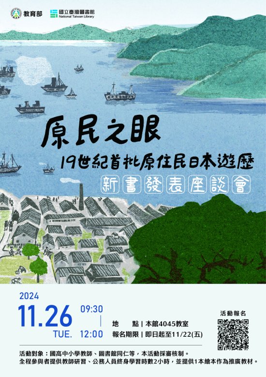 主旨: | 轉知國立臺灣圖書館於113年11月26日辦理《原民之眼:19世紀首批原住民日本遊歷》繪本新書座談會,請貴校鼓勵教師及圖書館同仁等參與並本權責核予公假登記,請查照。 |