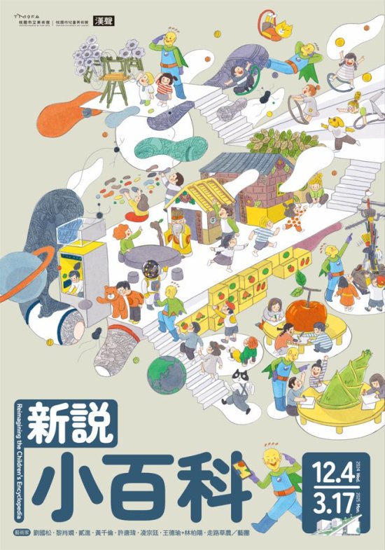 一、 | 桃園市兒童美術館策劃「新說小百科」年度特展,與《漢聲小百科》為靈感,展出劉國松、黎肖嫻、貳進、黃千倫、許唐瑋、凌宗廷、王德瑜+林柏陽、走路草農 ∕ 藝團等八組藝術家的作品,透過錄繪畫、空間計畫、數位互動等不同當代藝術創作,透過獨特的個人經驗和多變的藝術形式「新說」知識可供自由觀看的視角。 |